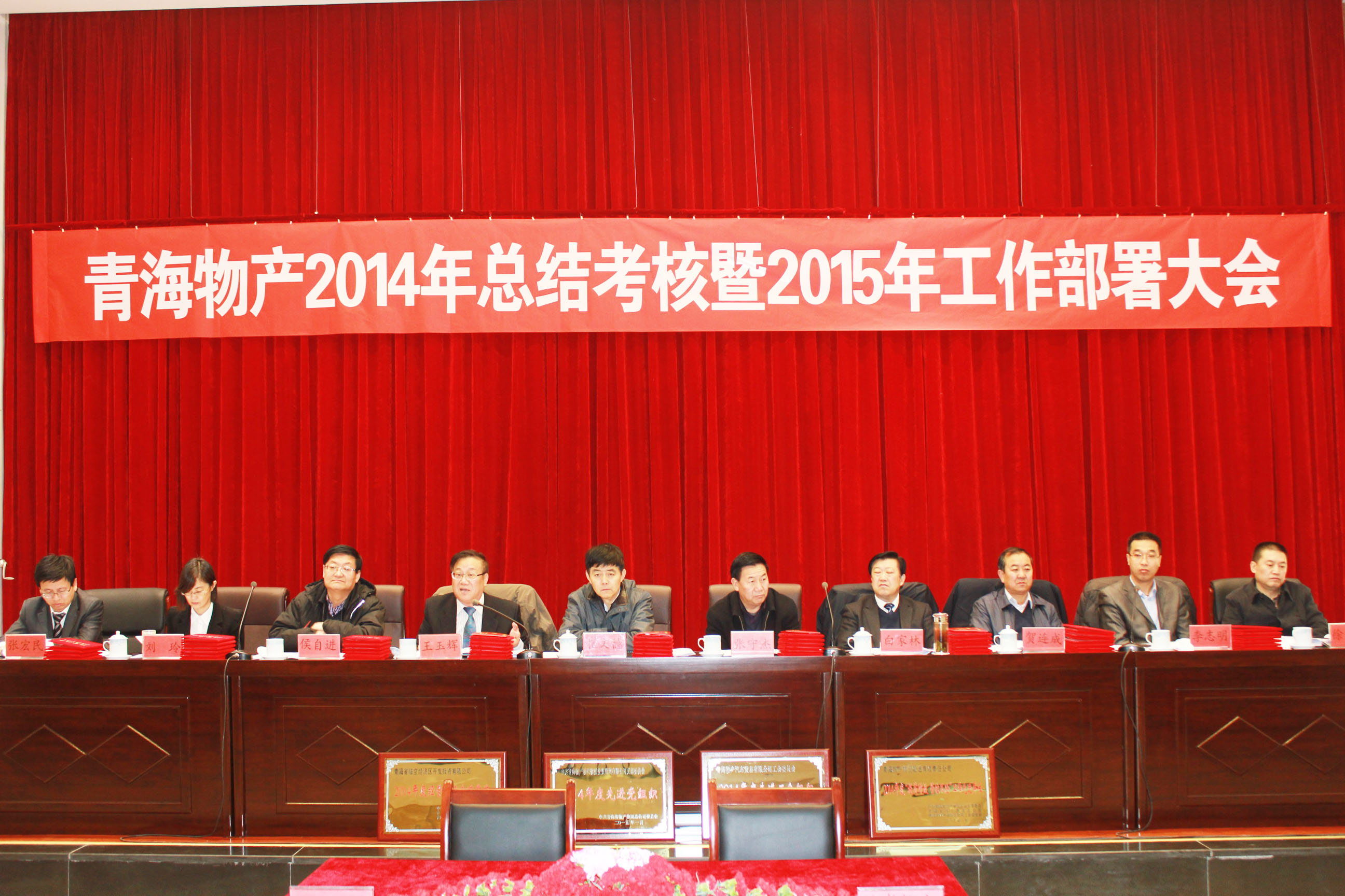 2015年1月31日,青海省物產(chǎn)集團(tuán)總公司召開(kāi)"青海物產(chǎn)經(jīng)營(yíng)發(fā)展2014年總結(jié)考核暨2015年工作部署大會(huì)"。 會(huì)議由集團(tuán)紀(jì)委書(shū)記李志明主持,省國(guó)資委黨委委員、副主任崔文德,省國(guó)資委第二監(jiān)事會(huì)主席張守杰、省國(guó)資委考核與分配處處長(zhǎng)侯自進(jìn)、省國(guó)資委黨群工作處調(diào)研員賀連成、省國(guó)資委第二監(jiān)事會(huì)專(zhuān)職監(jiān)事唐剛、省國(guó)資委紀(jì)委干部李世晶蒞臨大會(huì),集團(tuán)領(lǐng)導(dǎo)、所屬各公司班子成員、受表彰人員、離退休人員、總部員工參加了會(huì)議。