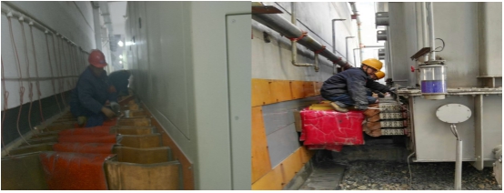 今年,對動力供電系統的濾油和檢修自2016年11月11日開始至2016年12月14日結束,歷時34天,在車間負責人的帶領下,運行各班組按照要求統一協作,以飽滿的工作熱情與低溫天氣和各種困難作斗爭,將工作重心圍繞在機組濾油和供電系統全面檢修上,他們有條不紊對計劃安排的整流柜銅母線螺栓、一次高壓開關和刀閘的瓷瓶、保護二次系統的端子排、控制柜進行全面清掃及螺絲緊固,對變壓器進行清洗,同時加強設備巡視,對濾波系統檢查出的刀閘操作機構嚴重銹蝕,銅鋁過渡連接板開裂等進行了及時處理,認真進行消缺,保證了供電安全平穩。