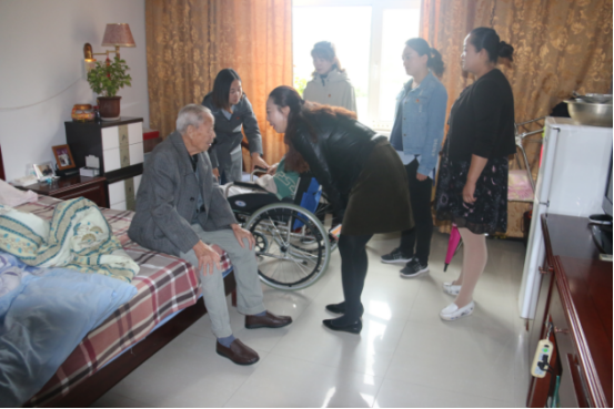 互動游戲結束后,志愿者們參觀老人們的居所,并陪伴在老人們身邊說著貼心的話。一對結婚60多年的老人,始終形影不離、相互扶持,相濡以沫。老奶奶激動的對志愿者說:"你們能來看望我們,噓寒問暖,使我們感到非常親切。"老年公寓負責人說:"你們的到來使老年公寓熱鬧起來,為老人們送來了歡樂和溫馨"。