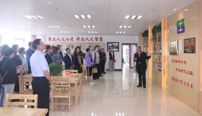 集團(tuán)公司黨委書(shū)記、董事長(zhǎng)王玉輝同志通過(guò)展板介紹了集團(tuán)公司三大園區(qū)以及職工書(shū)屋建設(shè)發(fā)展情況,并在青藏物流商務(wù)中心大廳觀看了集團(tuán)形象宣傳片,隨后前往22、23樓"青物書(shū)院"參觀了馬克思書(shū)屋、新時(shí)代·紅書(shū)坊、職工書(shū)屋、女職工溫馨小屋以及物產(chǎn)健身中心。