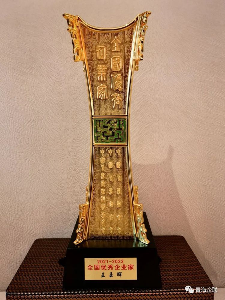 與會(huì)領(lǐng)導(dǎo)為青海物產(chǎn)集團(tuán)黨委書(shū)記、董事長(zhǎng)王玉輝頒發(fā)獎(jiǎng)杯