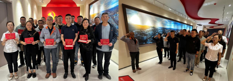 參觀結(jié)束后,全體黨員面對(duì)黨旗,莊嚴(yán)宣誓,重溫入黨誓詞,公司黨委書記王兆明為在場的黨員同志發(fā)放政治生日賀卡,并贈(zèng)予政治生日祝福。