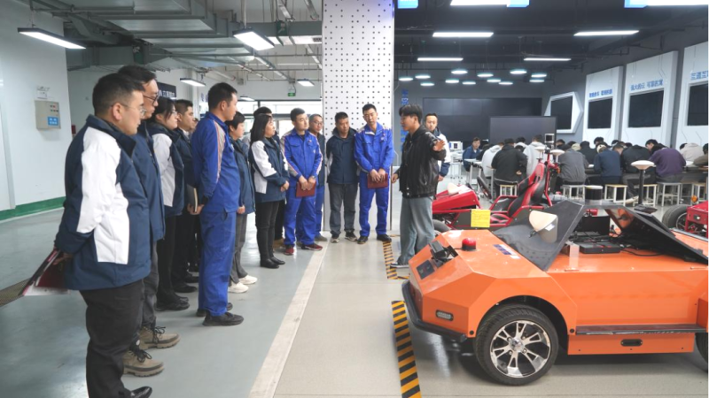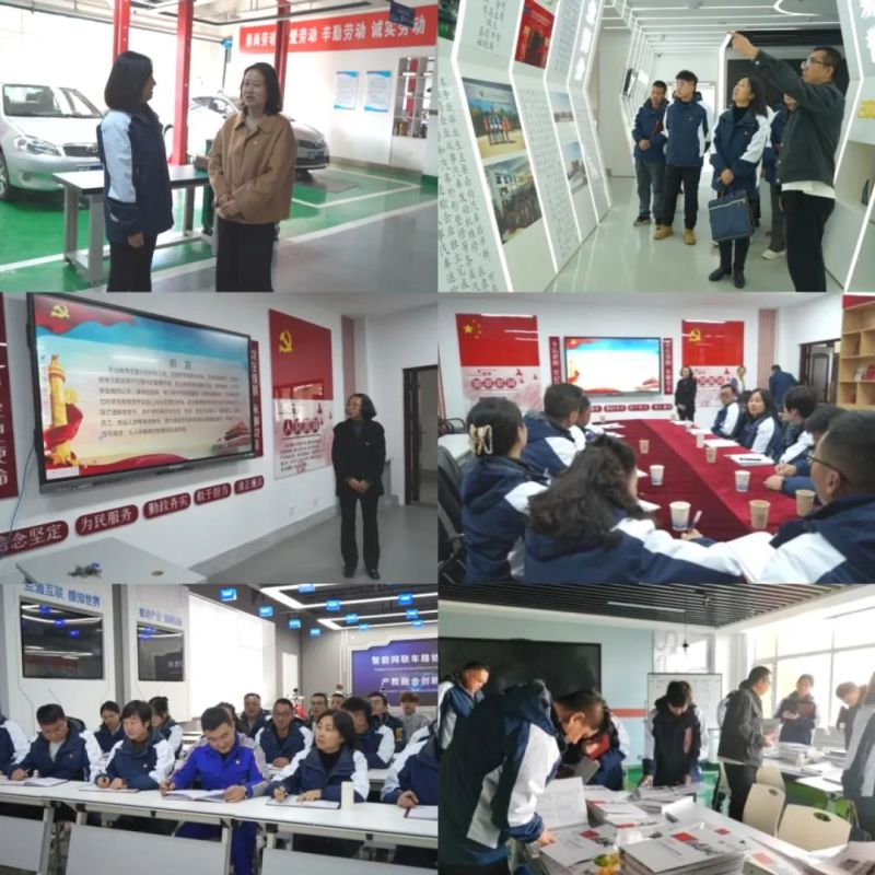 在參觀汽車專業實訓中心時,交通運輸學院汽車系智慧互聯專業老師為支部黨員進行了精彩的現場授課。大家積極請教,互動交流,了解了智慧互聯交流與共享的新型模式,對生活和工作帶來便利和智能化體驗等內容。在場認真聆聽的“物產工匠”石學林對近期將與高校老師組隊參加“西部陸海新通道建設全國引領性勞動和技能競賽”,有了新的啟發。下一步,校企雙方將會對“優服務、壯產業”技能競賽項目進行深入的研究和探討,做到交流“不斷線”,學習“不停步”。